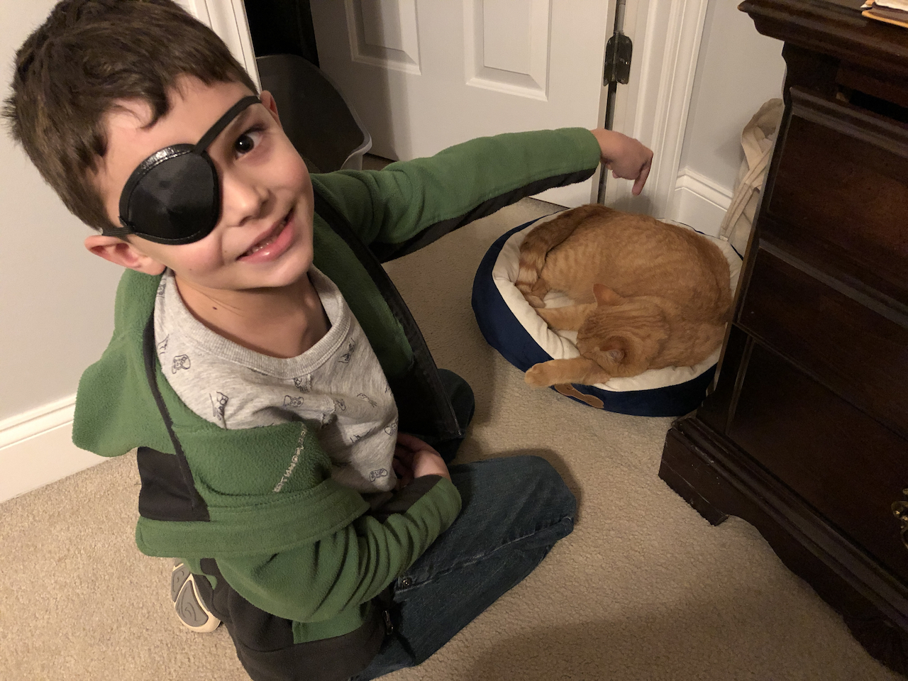 Constantly experiencing double vision had become an annoyance to Asher, so his mother picked up some eye patches from the pharmacy, which became a hallmark of his appearance for many months.